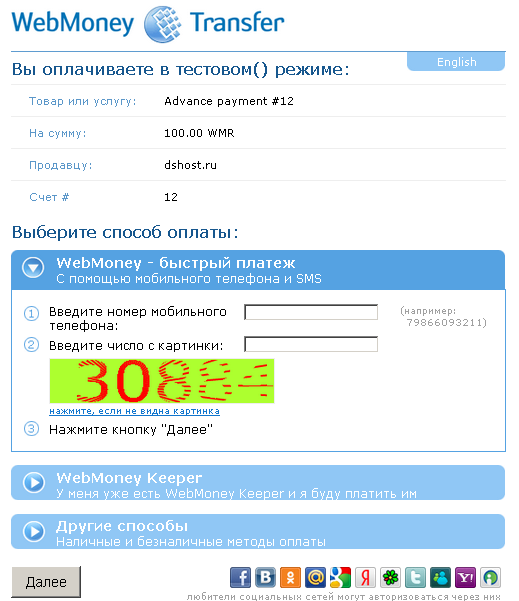 1) Для оплаты услуг через webmoney , в разделе «платежи» создаете платеж и выбираете оплату «WMR (dshost.ru)»